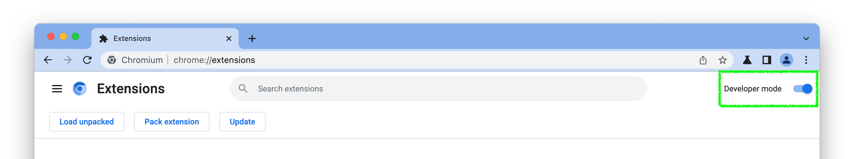 chrome://extensions/,然后打开“开发者模式”。
