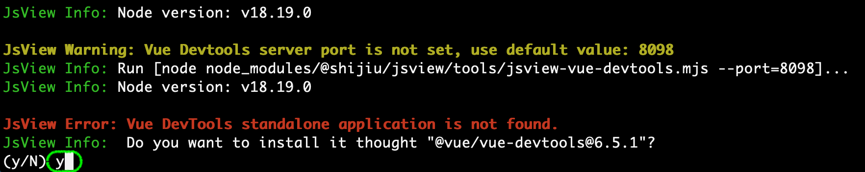 第一次运行命令时根据如下提示输入y或yes安装依赖包。